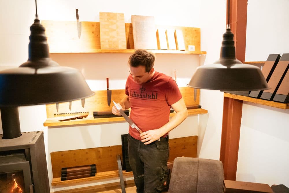 Seine Messer sind preislich im höheren Segment angesiedelt, ein Umstand, der sowohl der Firmenphilosophie als auch der exzellenten Qualität geschuldet ist: „Man kann Stahl nicht ewig recyceln, dadurch wird das Produkt immer schlechter. Ich fertige ausnahmslos Klingen an, die von Generation zu Generation haltbar, und vor allem universell einsetzbar sind. Das ist der Anspruch meiner Kunden – und auch mein Anspruch an mich.“