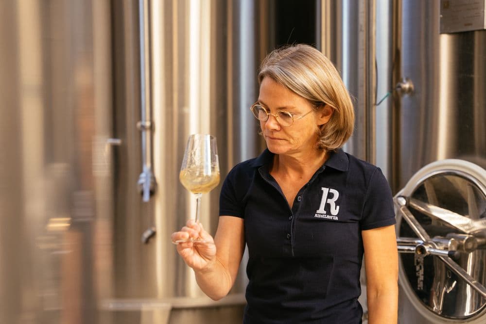 Im Wein liegt oftmals nicht nur die Wahrheit, sondern – wie in Susanne Riegelhofers Fall – auch die Liebe. Ihre Wein-Geschichte beginnt im Jahr 1994. Frisch nach dem Abitur stellte sich die gebürtige Deutsche aus der Pfalz die Frage: Was tun mit meinem Leben? Die angefangene Tischlerlehre entpuppte sich recht schnell als die falsche Antwort darauf, also suchte sie im Berufsinformationszentrum nach Alternativen. Kataloge für Kataloge wurden durchgeblättert, Jobtitel gelesen, darüber nachgedacht und wieder verworfen, bis sie beim Studium für Weinbau- und Getränketechnologie hängen blieb. „Um sich für diesen Studienzweig auf der Fachhochschule im deutschen Geisenheim einzuschreiben, wurde ein abgeschlossenes einjähriges Praktikum vorausgesetzt.“ Also marschierte die junge Frau felsenfest von ihrer Idee überzeugt nach Hause, informierte die überraschten Eltern und fand sich Tage später bereits im Weingarten wieder, wo sie die ersten sechs Wochen damit verbrachte, die unerwünschten Austriebe von den Stämmen der Rebstöcke zu putzen. Im Nachhinein schmunzelt sie: „Ich war niemals mehr in meinem Leben so braungebrannt wie in diesem Jahr.“