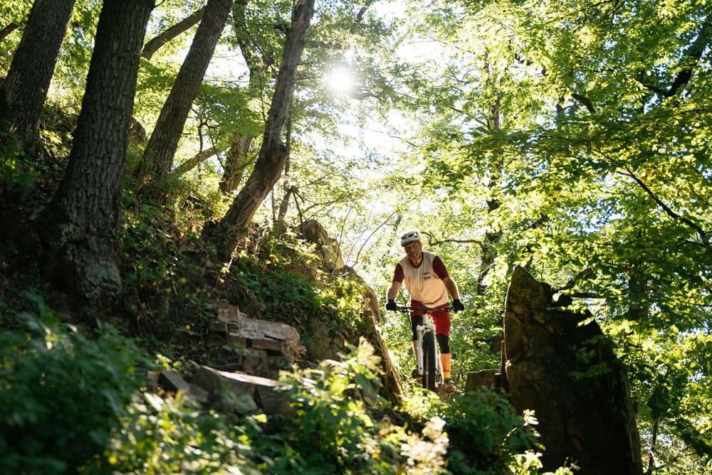 Wenn Martin Samek nicht gerade selbst mit seinem Bike auf den Trails rund um Stift Göttweig anzutreffen ist, kümmert er sich um den eigenen Betrieb. Gemeinsam mit seiner Frau Elisabeth betreibt er das ad vineas Gästehaus am Nikolaihof in Mautern an der Donau. Hier urlauben vor allem Familien und Reisende, die die Wachau aktiv erleben und kennenlernen wollen. Eigene Mountainbiketouren bietet Martin nicht an, „Mitfahrgelegenheiten“, wie er es nennt, gibt es jedoch immer wieder. „Uns ist klar, dass wir nicht das zweite Leogang sein können, aber das wollen wir auch gar nicht. Unser Plus ist die uralte Kulturlandschaft Wachau. Und unsere Lage zwischen Wien und Linz, dem böhmischen Massiv und dem Mariazeller Land. Hier kommt viel zusammen, und man ist auch gleich überall. Das macht die Region so spannend.“ Und wenn seine Gäste mit dem Bike auf der Trailarea zudem dann am Ende der Tour den Weg ins malerische Stift Göttweig finden, dann kann nicht nur der Punkt „Kultur“ auf der Urlaubs-Bucket-List abgehakt werden – dann ist das auch der Beweis, dass eine außergewöhnliche Symbiose erfolgreich zu gedeihen scheint.